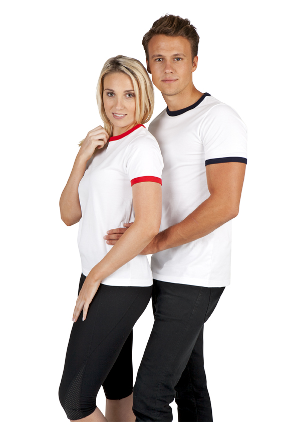 Neck ribbing, side seamed, shoulder to shoulder tape, double needle hems, preshrunk to minimise shrinkage